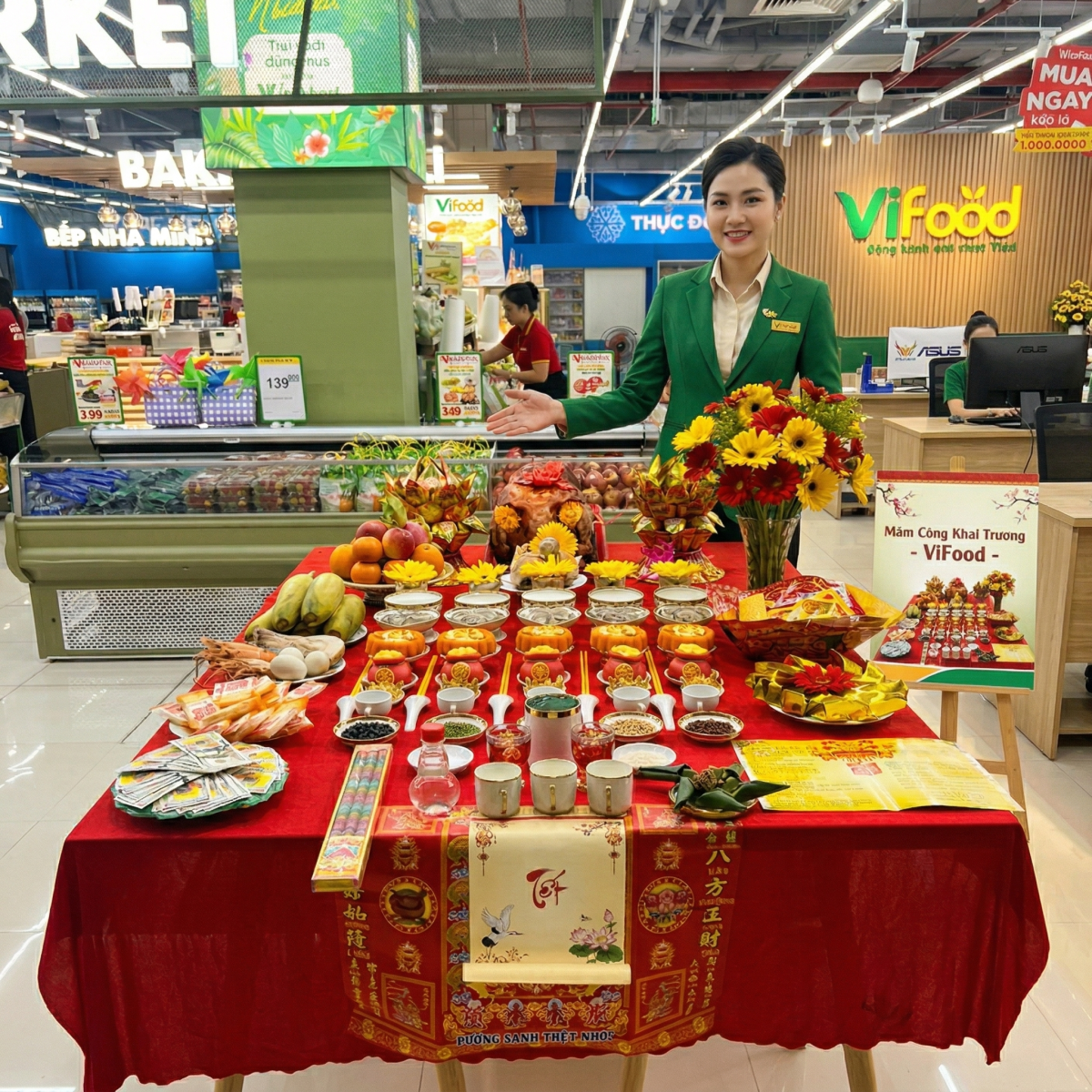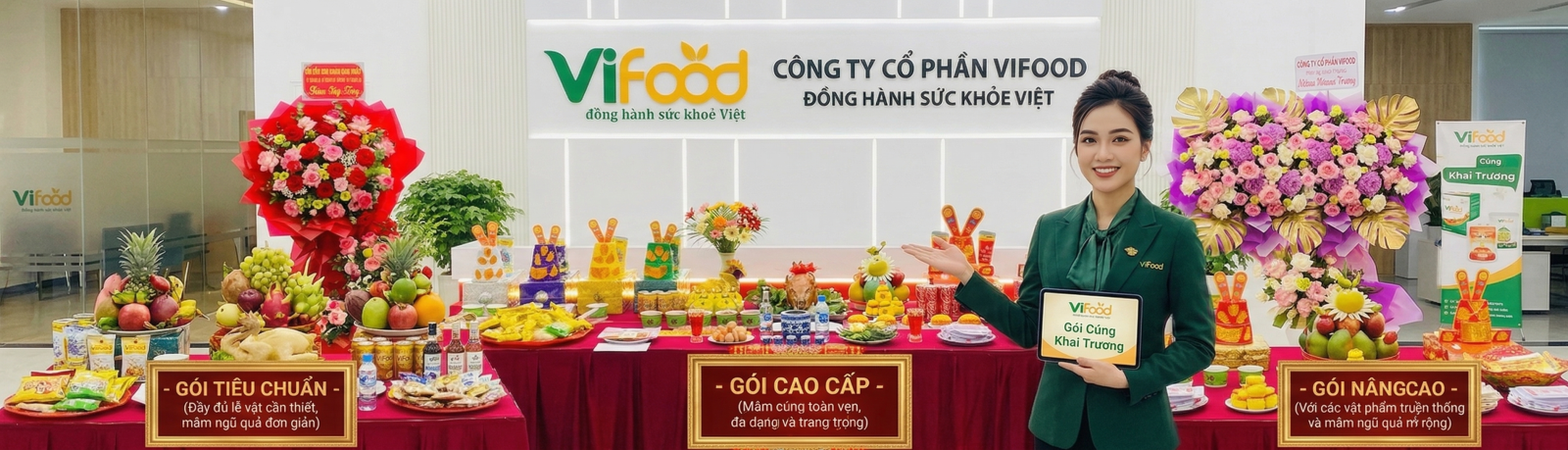 VIFOOD cung cấp dịch vụ mâm cúng khai trương trọn gói giúp doanh nghiệp chuẩn bị đầy đủ lễ vật đúng phong tục, tiết kiệm thời gian và đảm bảo buổi lễ trang trọng.